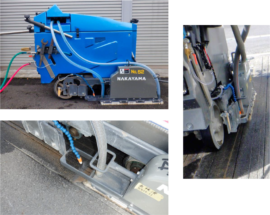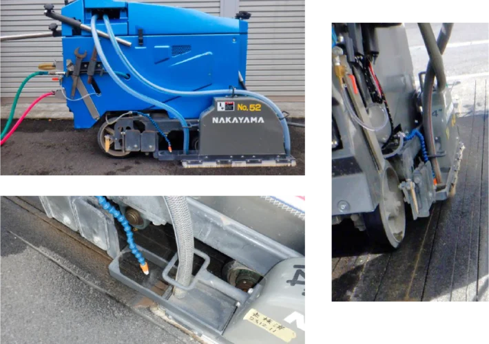 機体後方からポンプで清水を噴出して路面を清掃!